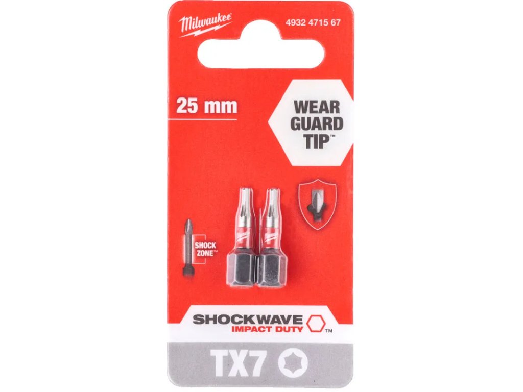 MILWAUKEE Šroubovací bit 1/4" Shockwave Impact Duty TX7 25mm bal.2ks